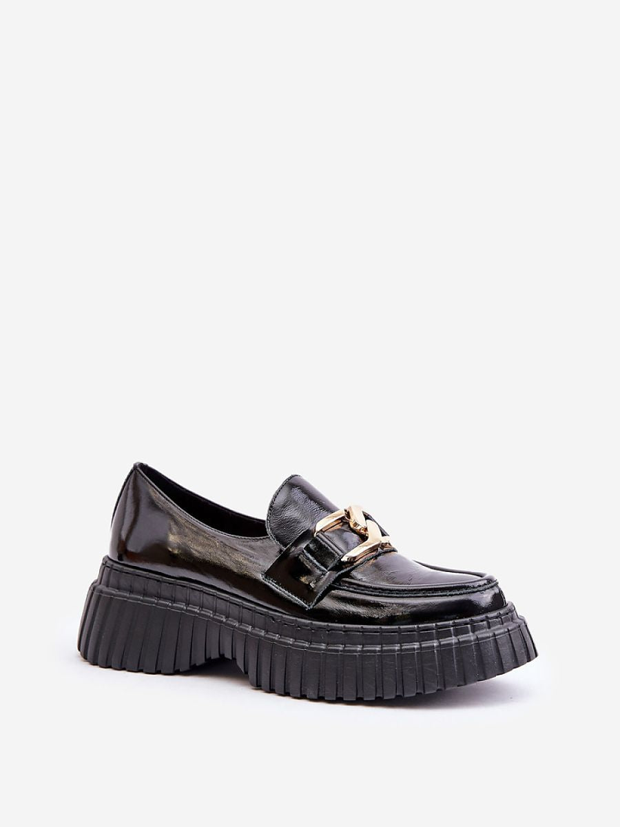 Mila | Mocassins femme cuir verni noir à semelle plateforme