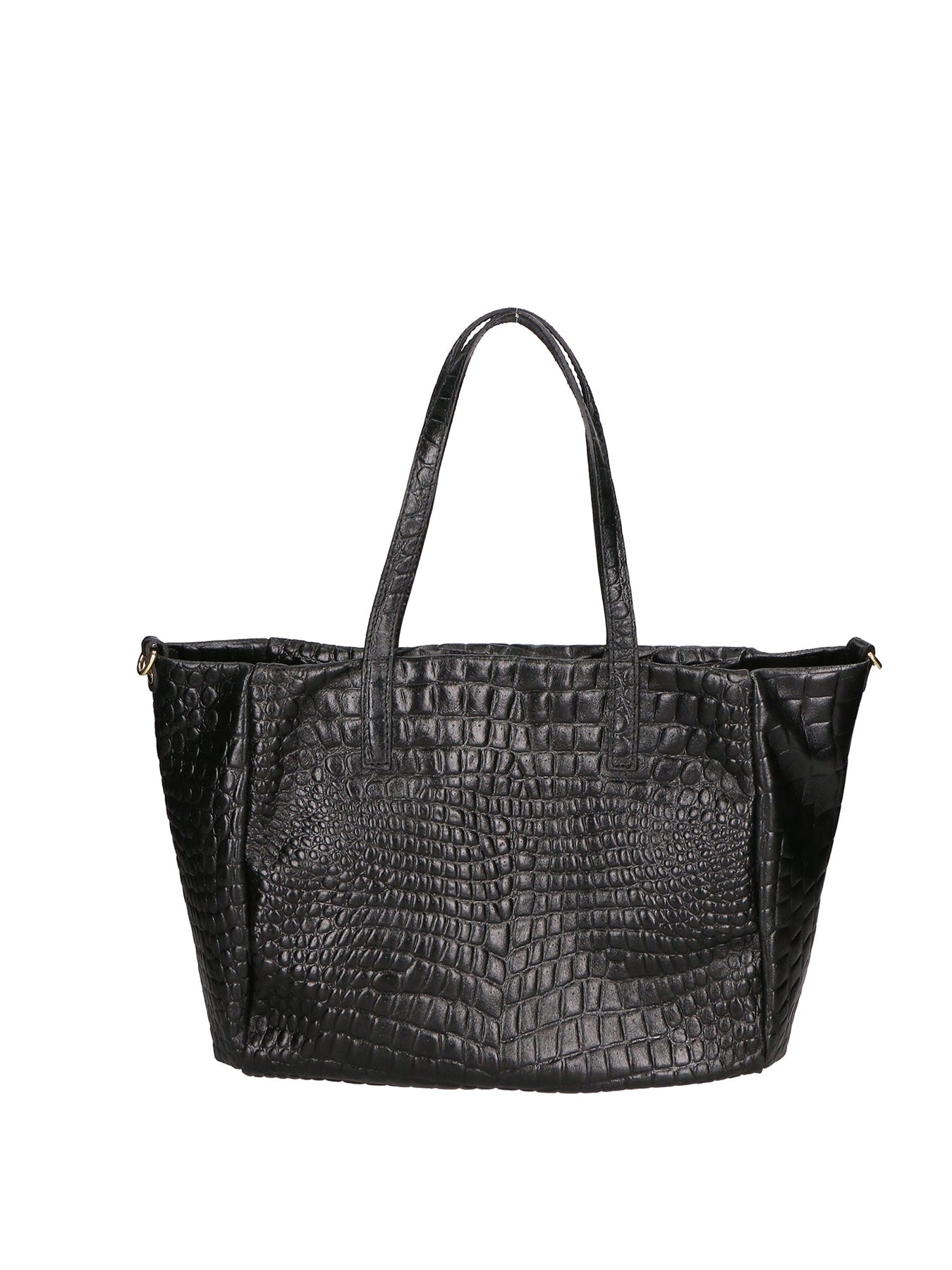 Sac de cours en Cuir Véritable Effet Croco Noir - Made in Italy